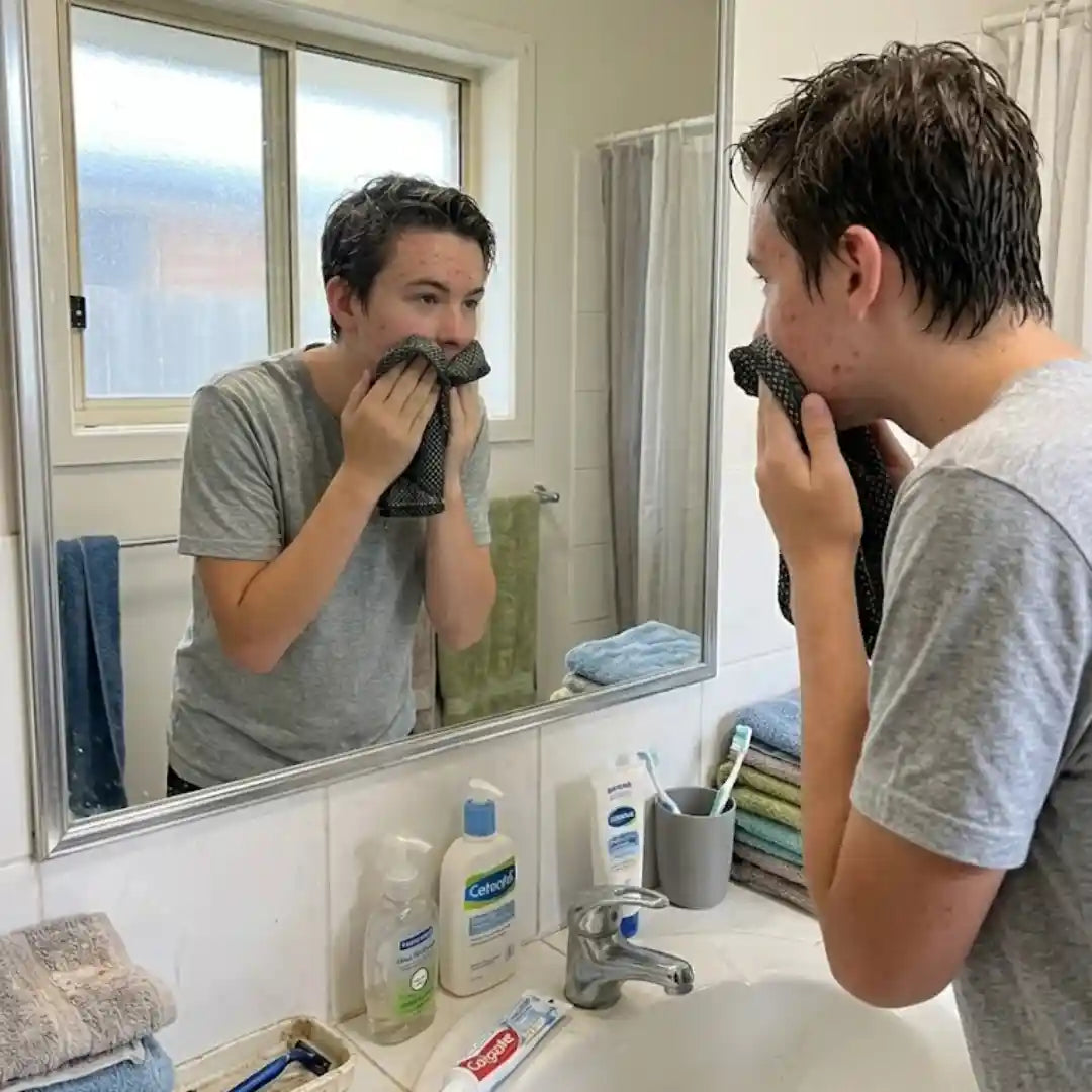 Cada vez que tu hijo se frota la espalda con ella o con las manos, no está limpiando su acné; está sembrando bacterias en sus poros abiertos.